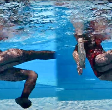 People dance different dances* in the water. The head stays above the water. I mainly dance in the river, but you can also dance in pools and other water areas. It is possible to dance almost all dance styles in the water. You adapt the movements to the rhythm of the music. Dance styles such as: *Reggaeton, Salsa, Tango, Rumba, Kizomba, as well as contemporary, modern, African or Indian dances, whatever you like to dance!