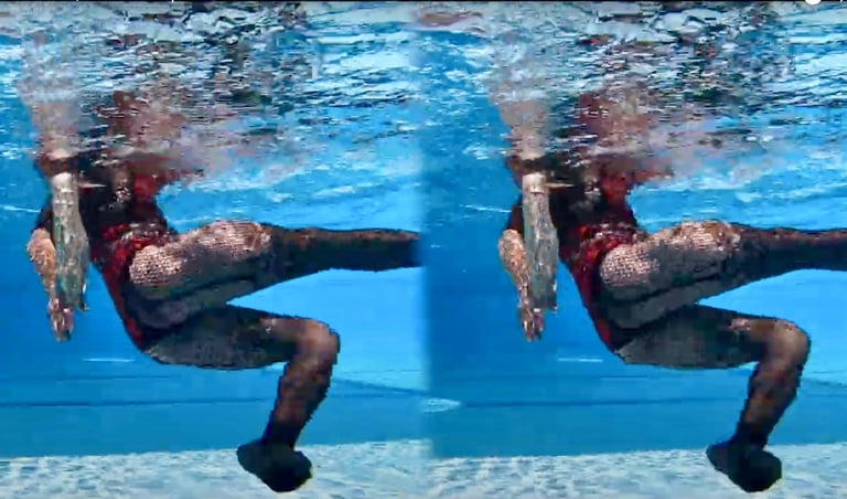 This is not synchronized swimming or dancing, as the head is usually under water and there is hardly any contact with the pool floor. And it has nothing to do with Michael Flatlay's Irish dance group